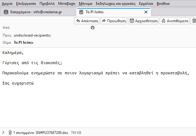 - διεύθυνση είτε που μοιάζει πολύ με κάποια γνωστού παρόχου ή από λογαριασμό που έχει παραβιαστεί